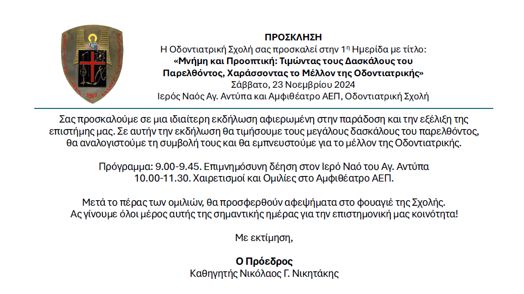 1Η ΗΜΕΡΙΔΑ ΟΔΟΝΤΙΑΤΡΙΚΗΣ ΣΧΟΛΗΣ ΕΚΠΑ