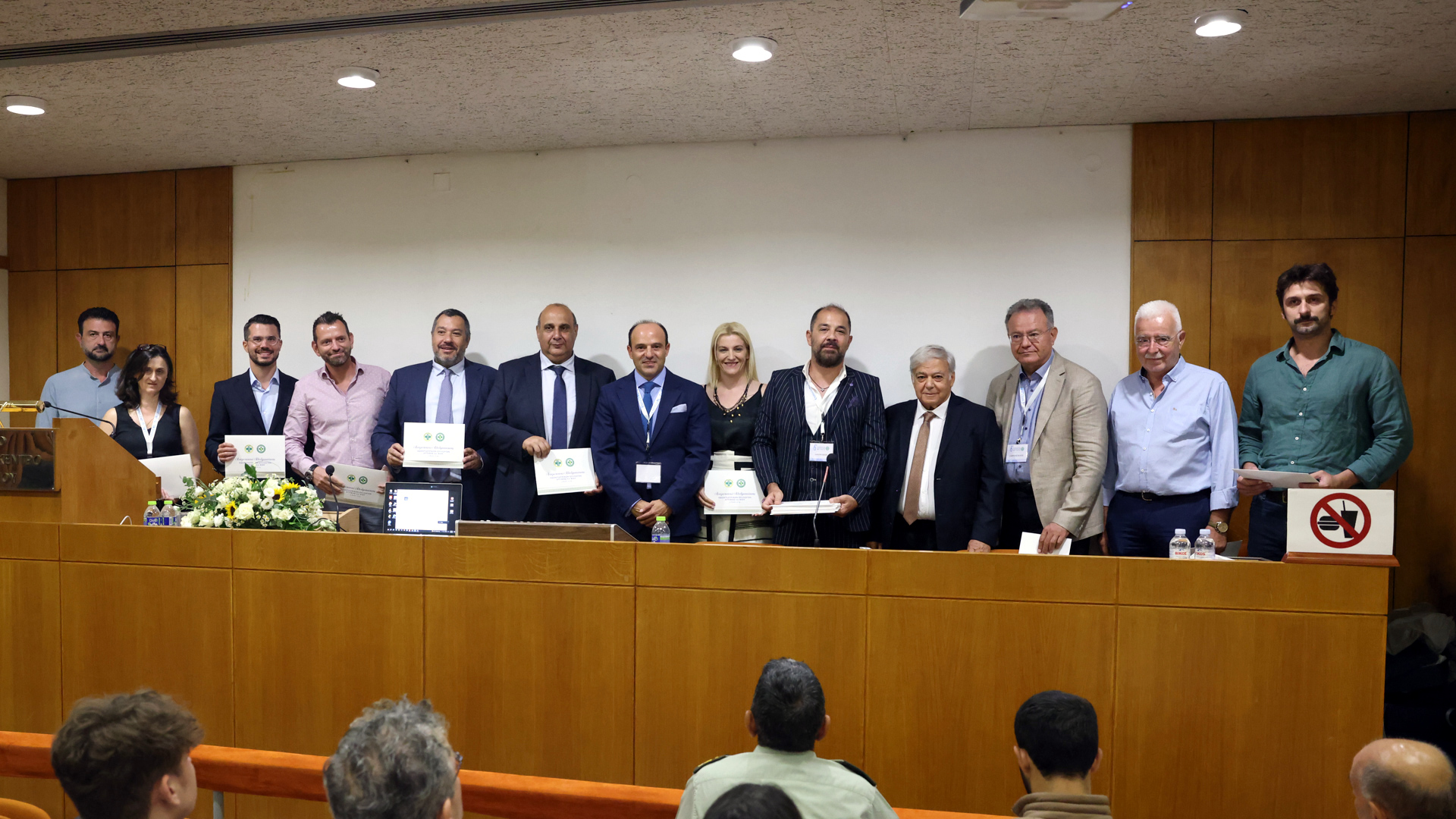 Από δεξιά, ο Πρόεδρος του Ο.Σ. Αττικής κ. Αθανάσιος Υφαντής και ο Πρόεδρος του Ο.Σ. Χίου κ.Ανδρέας Καραμούζος, κρατώντας το Πρωτόκολλο Αδελφοποίησης